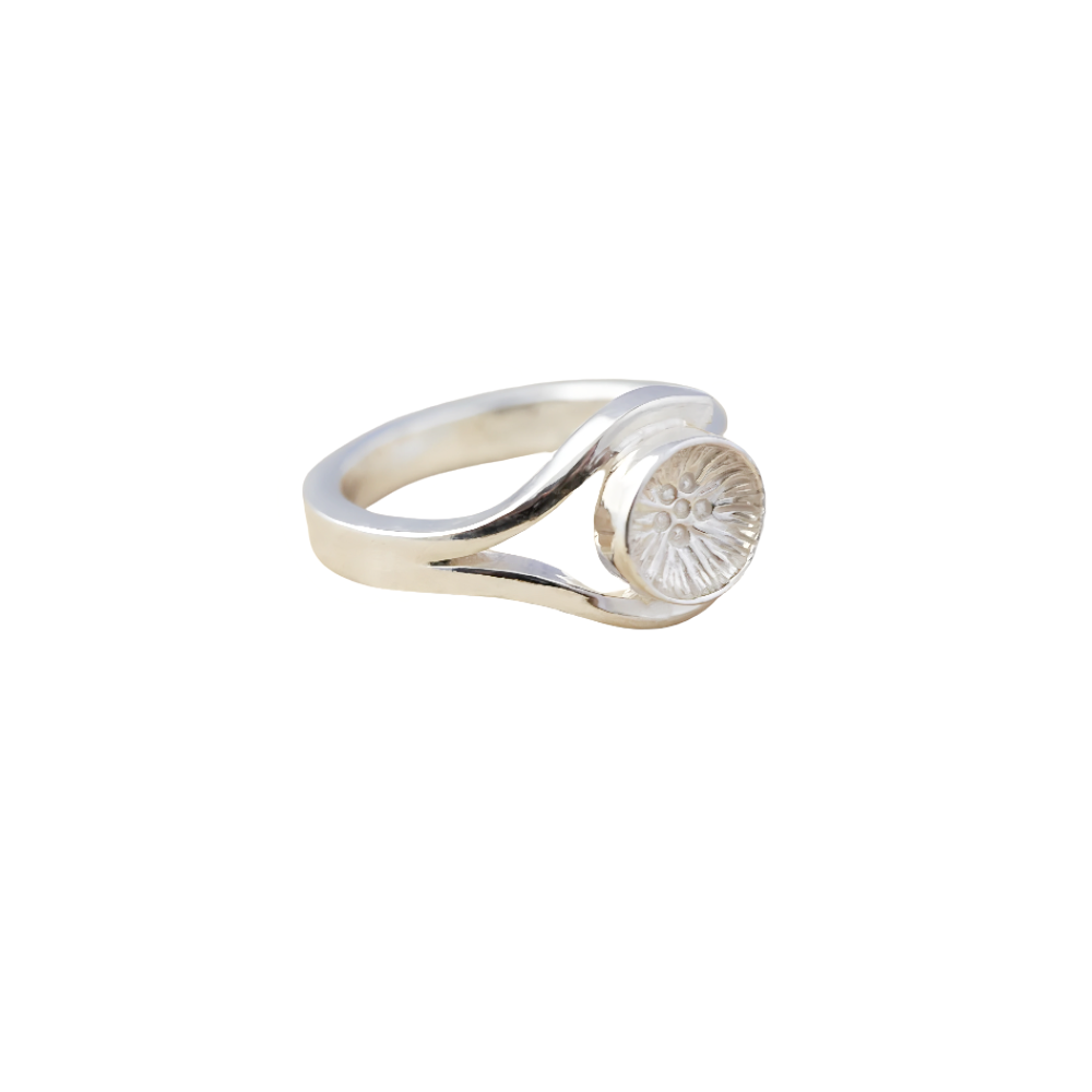 Silverringen symboliserar den runda och djupa fjällsjön, sett ur en fjällvråks perspektiv.