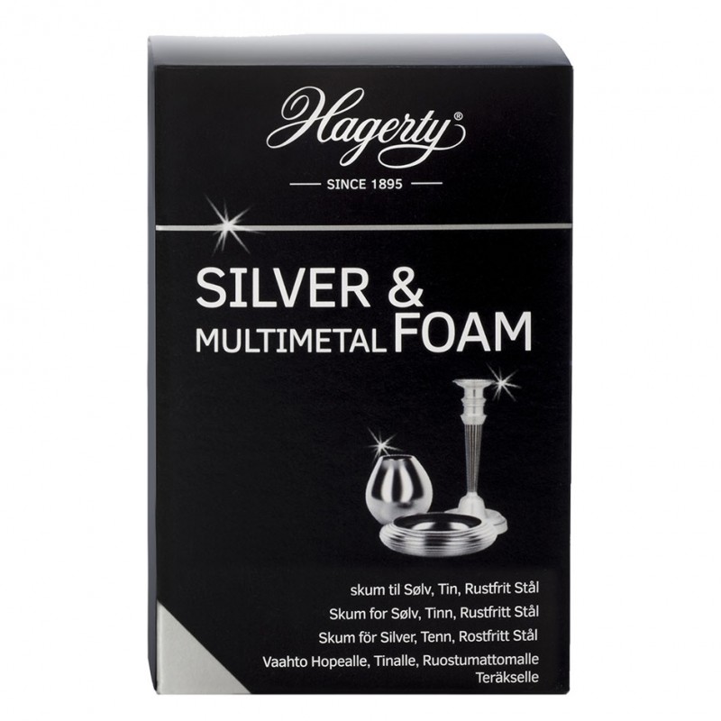 Silver & Multimetal Foam återger glans till silver, silverpläteringar, tenn och stålföremål. Bevarar glansen på djupet på missfärgat silver och andra metaller.